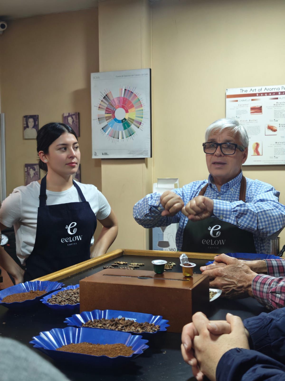 Una parte fundamental de nuestro compromiso es brindar capacitación constante y abrir puertas a nuestros caficultores, invitándolos a ferias y eventos donde pueden exponer la singularidad de su café y compartir la historia de su origen. Creemos en un apoyo colectivo que celebra el esfuerzo y la dedicación de quienes hacen posible cada sorbo de eelow Coffee.
