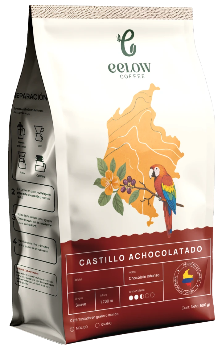 Cultivado a 1.700 metros en Sasaima, Cundinamarca, nuestro café Arábico Castillo se caracteriza por su suavidad, sabor intenso a chocolate y aroma sutil a roble. Con baja acidez, es un café equilibrado, lavado y secado de forma natural bajo prácticas sostenibles que cuidan la tierra y a los caficultores. Tostado medio y disponible en grano o molido, es una experiencia auténtica que refleja la riqueza del café colombiano.