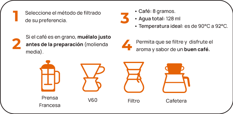Café premium con una tradición cafetera de más de 80 años. Su proceso artesanal, desde el cultivo hasta la taza, ofrece un café de alta calidad con un sabor equilibrado y auténtico. Elaborado con prácticas sostenibles y tecnología ECOING de Ingesec, permite ahorrar hasta 48 litros de agua por libra producida, contribuyendo al cuidado del medio ambiente y a una producción responsable.